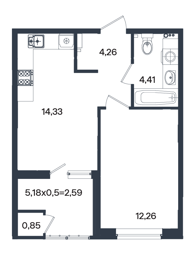 1К-квартира 38.67 м²