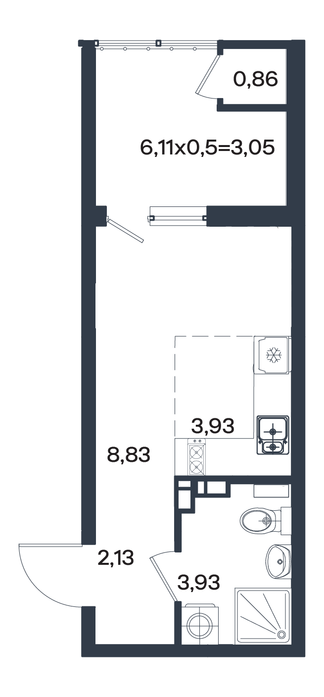 Студия 22.73 м²
