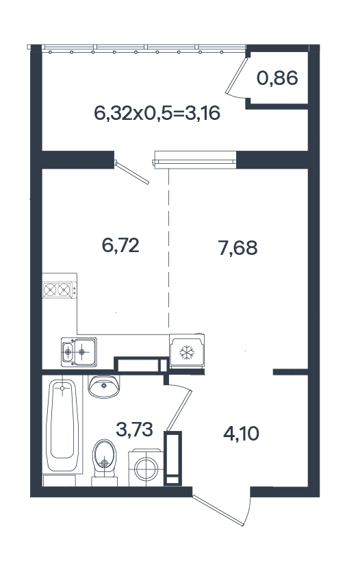 Студия 26.25 м²