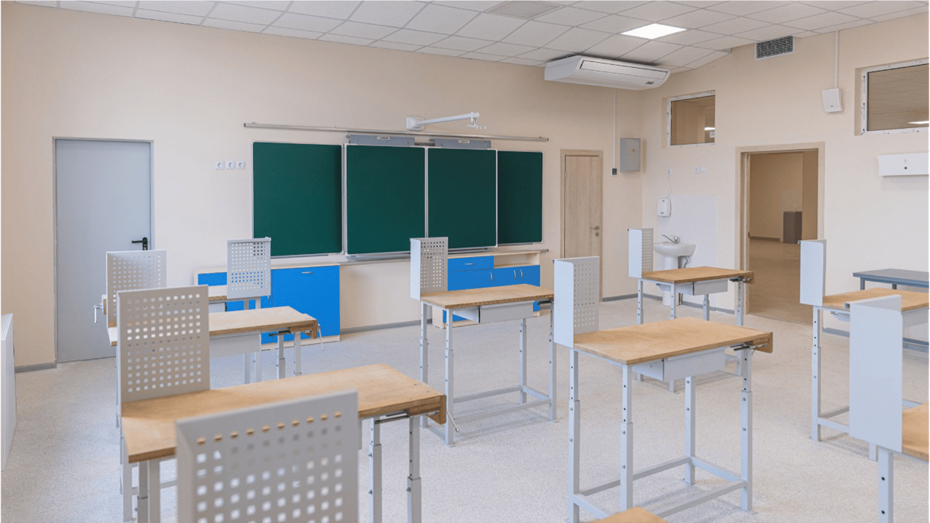 Трёхэтажное здание общей площадью почти 32 тысячи кв. м. помимо урочных классов вместит также кабинеты робототехники, лаборатории 3Д-моделирования и библиотечно-информационный центр. Для начальной школы предусмотрены два спортивных зала и зал ЛФК, а для среднего звена оборудованы большой спортивный зал для проведения уроков одновременно двух классов, малый спортзал и тренажерный зал.
