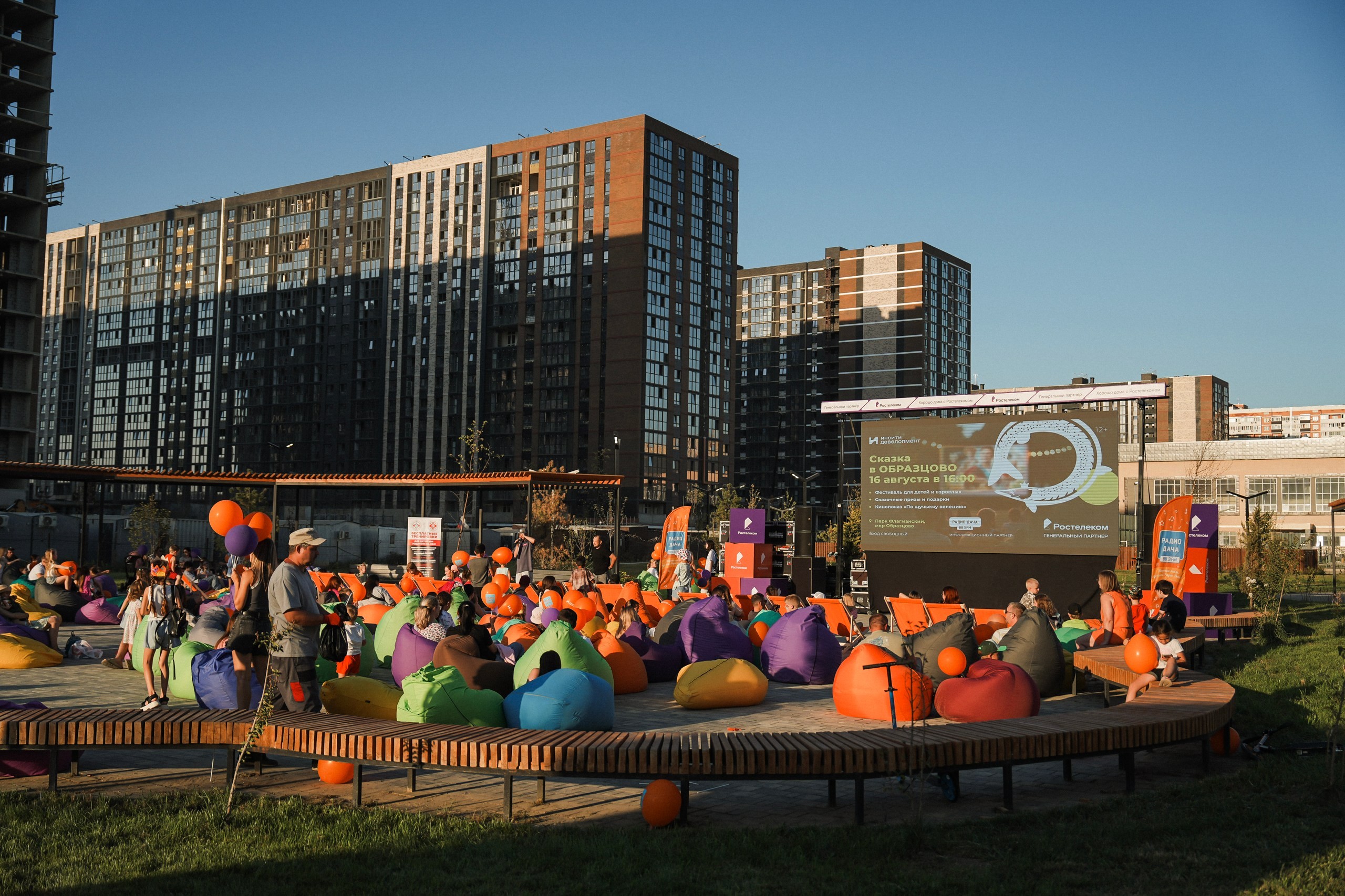 Теплый августовский вечер в парке «Флагманский» собрал жителей микрорайона Образцово на семейный кинопоказ. «ИНСИТИ девелопмент» организовал фестиваль «Сказка в Образцово» при поддержке «Ростелекома».